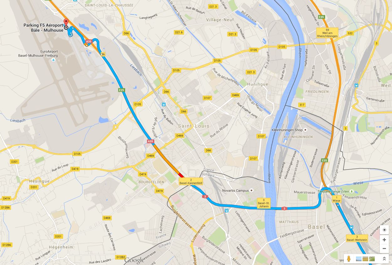 Llegar al parking es muy, muy fácil: tan solo hay que seguir la A3 en dirección a Basel hasta llegar al a frontera, donde se convierte en la A35. En pocos kilómetros aparecerá la salida 36, que es la que tienes que tomar para llegar al parking y al Aeropuerto, en general.