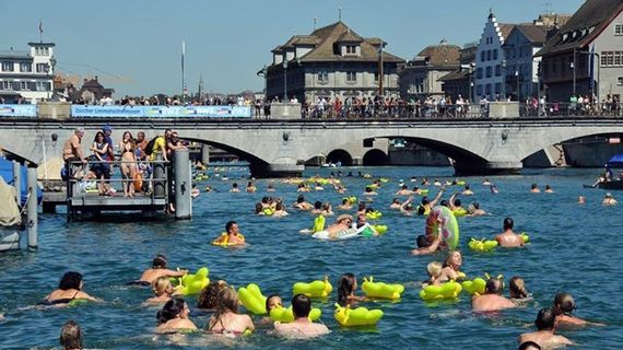 Este evento, que este año tendrá lugar el 15 o el 22 de agosto en función del tiempo y cuyo nombre es intraducible, es una de las actividades más divertidas en las que puedes participar este verano. Consiste en nadar por el río Limmat a su paso por Zürich junto con otros cientos de personas que tienen en común muchas cosas pero sobre todo una: un objeto hinchable. Me refiero a un flotador (malpensados…) que cada asistente recibe al inscribirse.