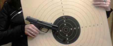 Como os contaba, el segundo disparo de mi segundo cargador de 5 balas dio en el blanco. Por supuesto, en el momento no me enteré pero al ver la diana me pareció una pasada. No tanto por haber hecho blanco perfecto sino porque mi costillo se las veía y se las deseaba para encajar un tiro en el círculo más pequeño de la diana. ¿A qué podía deberse? ¿Soy acaso una máquina de matar? 😛 No, lo que soy es mujer.