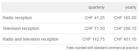 De acuerdo con la Ley, todo aquel que disponga de un aparato con el que se pueda ver TV o escuchar radio está obligado a reportarse a Billag AG y pagar el fee correspondiente. El pago, que se realiza por vivienda (independientemente del número de habitantes y de sus gustos o hábitos de consumo de radio y TV) no depende de la frecuencia con la que se consuma radio y TV ni a través de qué dispositivo.