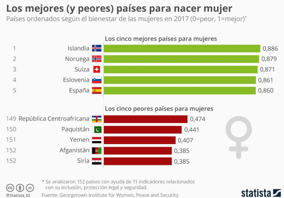 Ojo, se analizaron indicadores como inclusión, protección legal y seguridad. Vamos, que es uno de los mejores sitios para ser mujer, existir y no ser una paria social por sistema. Toma ya.