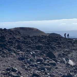 Día 5: hoy el día prometía, y es que por fin íbamos a acercarnos a la cima del volcán Etna (yuhuuuu). Y cuando digo “acercarnos” hablo en términos relativos, porque llegar hasta la cima es una hazaña reservada a expertos montañeros (o locos de remate). Tras desayunar, cogimos el coche y nos encaminamos al Etna por unas carreteras que parecían una venganza en sí mismas, y que a la bajada me costaron un buen mareo. Una vez en el Refugio de la Sapienza, el punto de partida para visitar las inmediaciones del volcán, aparcamos y nos dispusimos a dar un paseo abrigados hasta las cejas. Y es que allí arriba hace un frío del carajo, y un viento que hace difícil hasta caminar. Aun así, incluso el peque se pegó su buen paseo entre rocas volcánicas y vistas sobre cráteres que nos dejaron boquiabiertos. ¡Menuda experiencia!